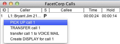 • The Callee column has the caller ID of the second party in the call. If there are more than two parties to the call (a conference), you can click on the call to get a menu and choose to open a call display that will show all the parties to the call.
