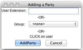 • To add new parties to the session, click on the Add Party button and you will be allowed to enter a single user or a group of users: