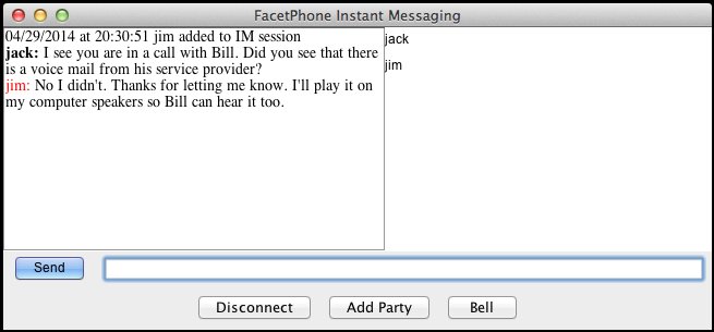 • When you initiate an instant messaging session with someone else or when they start one with you, the instant messaging window will be presented. The panel on the left shows the conversation and the panel on the right shows the members of the session. All messages are sent to all members of the session.